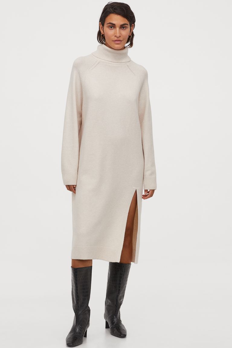 Este vestido de H&M tiene un cuello subido bastante grueso, perfecto para estar protegida del frío. También tiene mangas raglán largas y una apertura en la parte frontal del bajo. El precio de la prenda es de 34,99 euros, y este es el enlace en el que puedes encontrarlas.