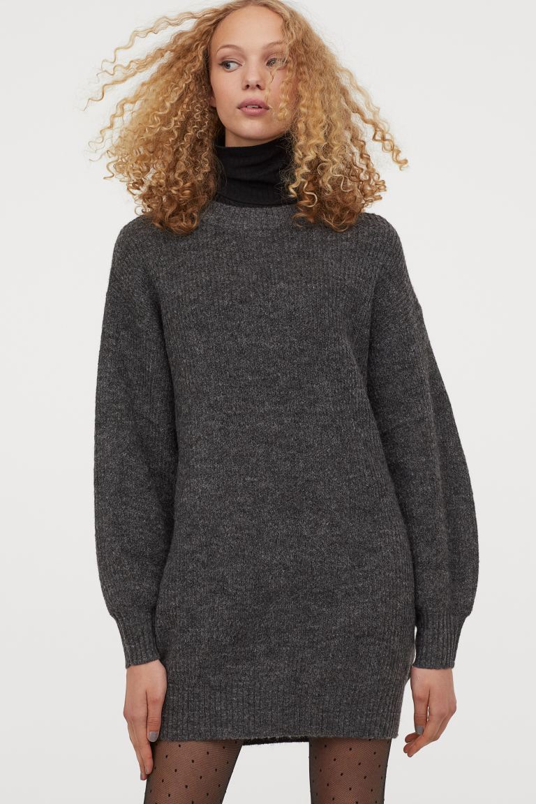 Entre los vestidos de punto de H&M también nos encontramos con que hay algunos modelos cortos. Estos son ideales para lucirlos con medias como la modelo que puedes ver en la imagen que encabeza estas líneas.