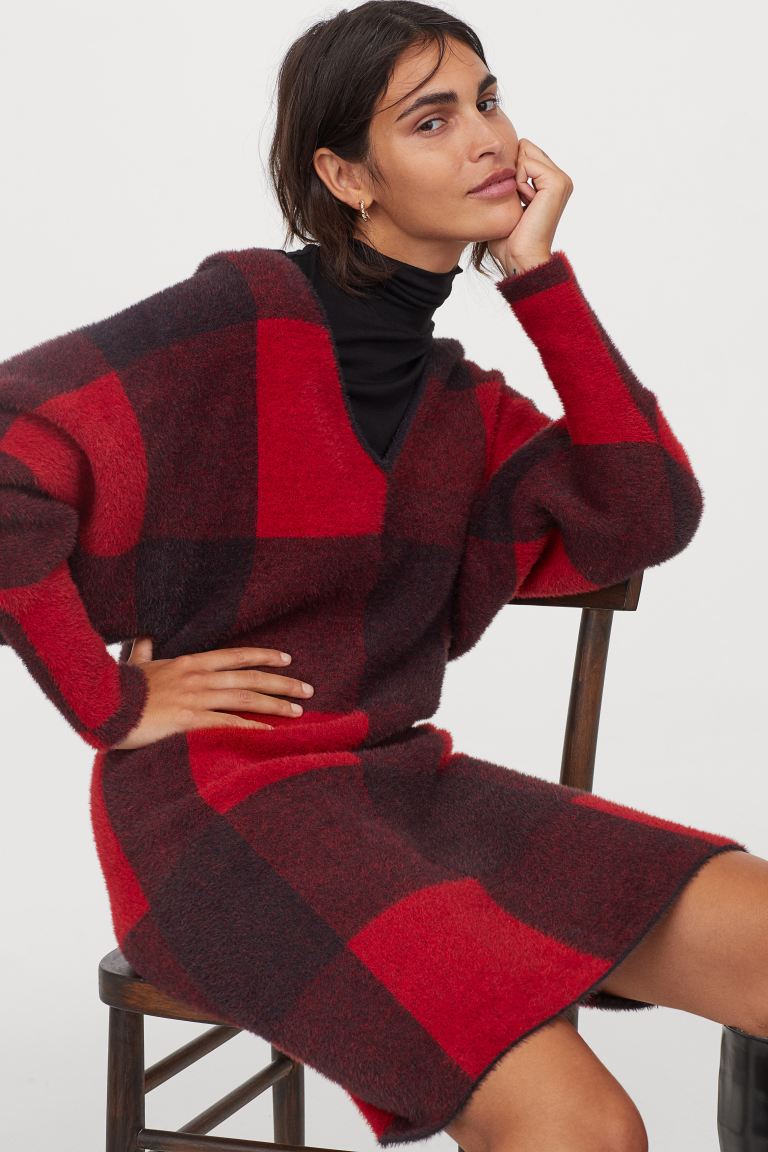 Un vestido de H&M un poco más animado a lo que hemos visto hasta ahora, ya que su color principal es el rojo, y el negro se impone con su estampado de cuadros. Pero no podemos negar que es un modelo que necesitabas ver puesto, y que sienta de maravilla.
