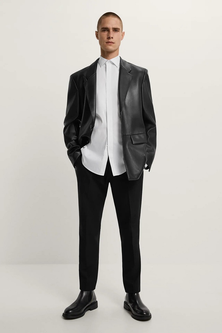 La siguiente prenda de Zara es esta camisa superslim fit, la cual está disponible en color blanco o en color negro. Es una prenda con cuello solapa, manga larga acabada en puño con botón y cierre frontal de botonadura oculta por solapa.