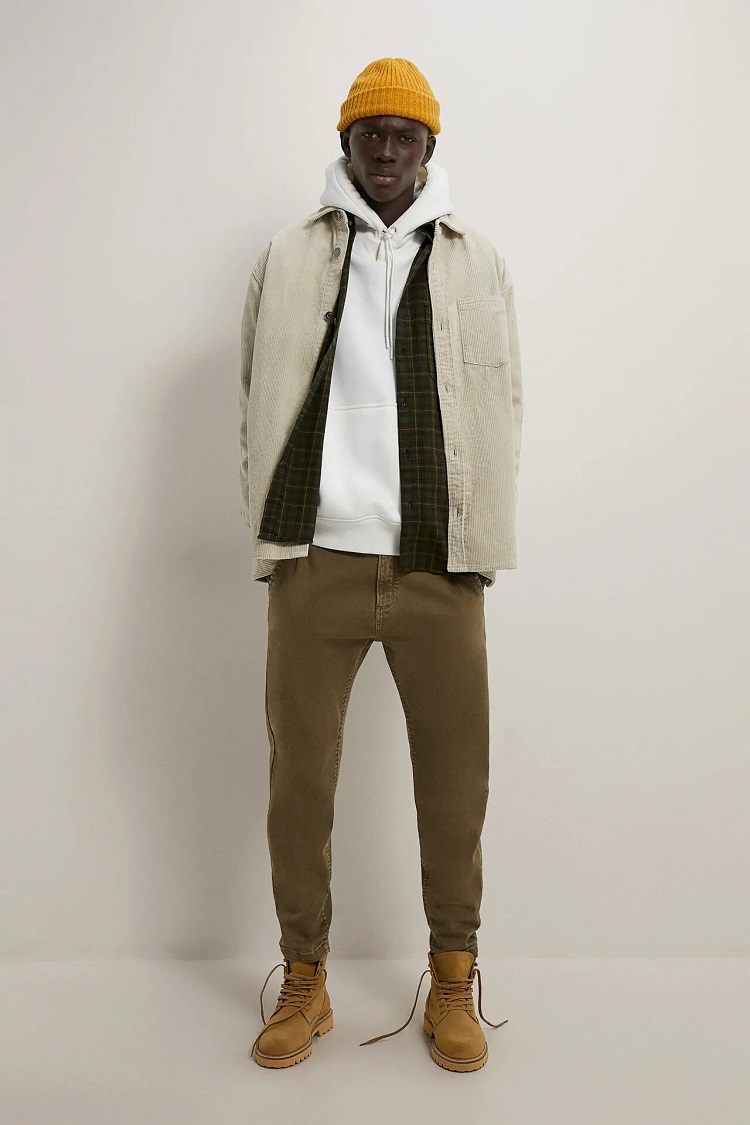 Continuamos con este pantalón chino skinny disponible en color negro, color gris y color khaki claro. Tiene bolsillos frontales, detalle de bolsillos en la espalda, siendo uno de vivo y otro de solapa. Además, destaca su efecto lavado y el cierre en la parte frontal, siendo de cremallera y botón.