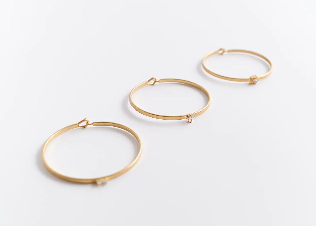 El último pack de accesorios de Zara que os mostramos es este de tres pulseras en tono dorado con un pequeño cristal brillante como centro de la atención.