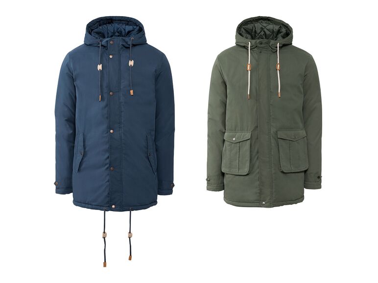 La siguiente prenda es otra parka de invierno para hombre de Lidl. Es una prenda con puños ajustables, capucha, cremallera con solapa protectora y dos modelos, azul y verde. El material es poliéster en el forro, exterior y acolchado, siendo de nuevo totalmente resistente al agua.