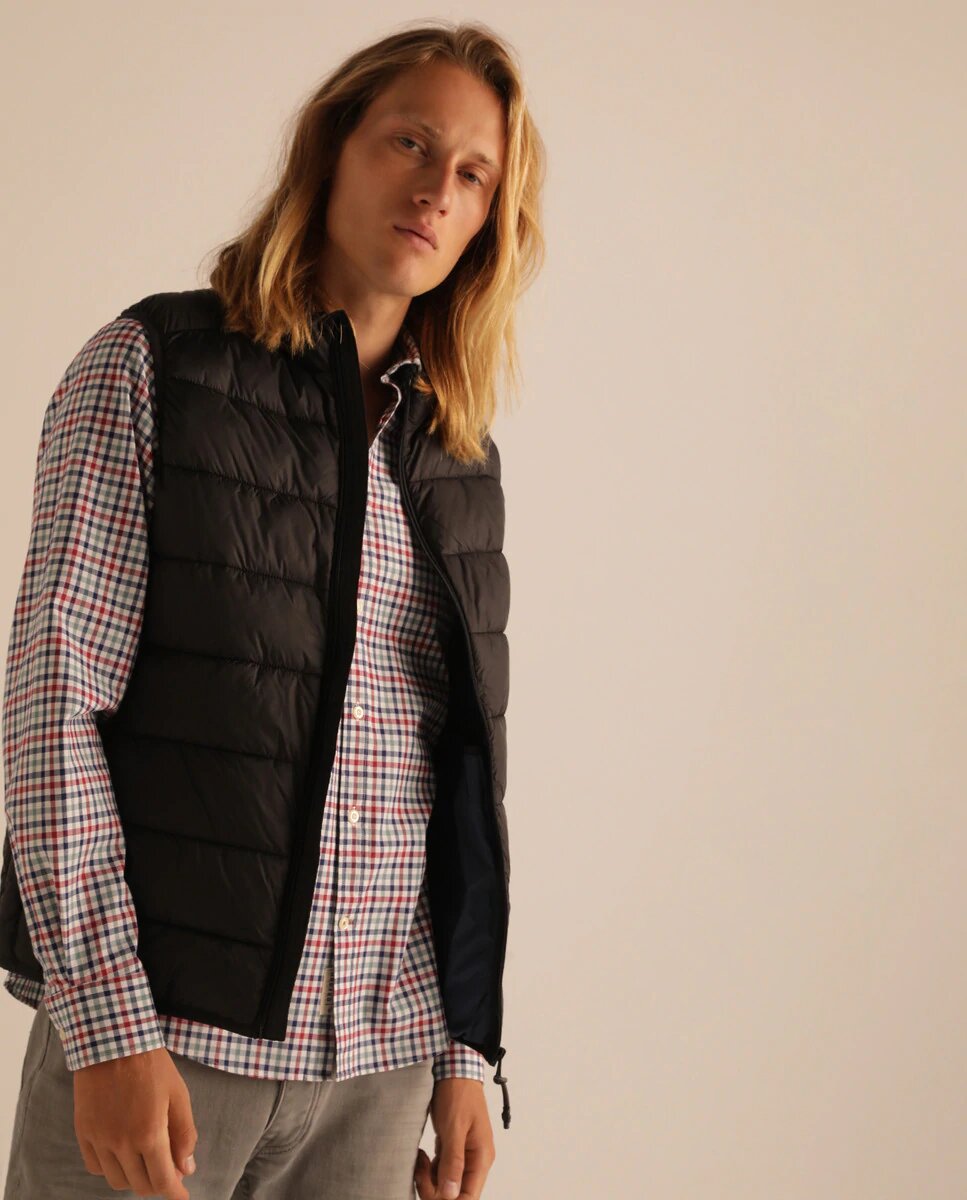 La siguiente prenda de El Corte Inglés es este chaleco acolchado de hombre de color negro y estampado liso. Es un chaleco ligero con dos bolsillos exteriores, cierre de cremallera, tejido repelente al agua y relleno sostenible. En cuanto a su composición, es 100% poliamida.