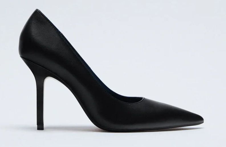 Igual que deberías tener un vestido negro en tu armario, tampoco te pueden faltar unos zapatos de tacón en color negro, porque pegan con absolutamente todo y convierten cualquier estilismo en un look mucho más glamuroso. Estos de la firma de Inditex están confeccionados en piel, tacón de aguja y acabado en punta, un modelo que nunca pasa de moda.