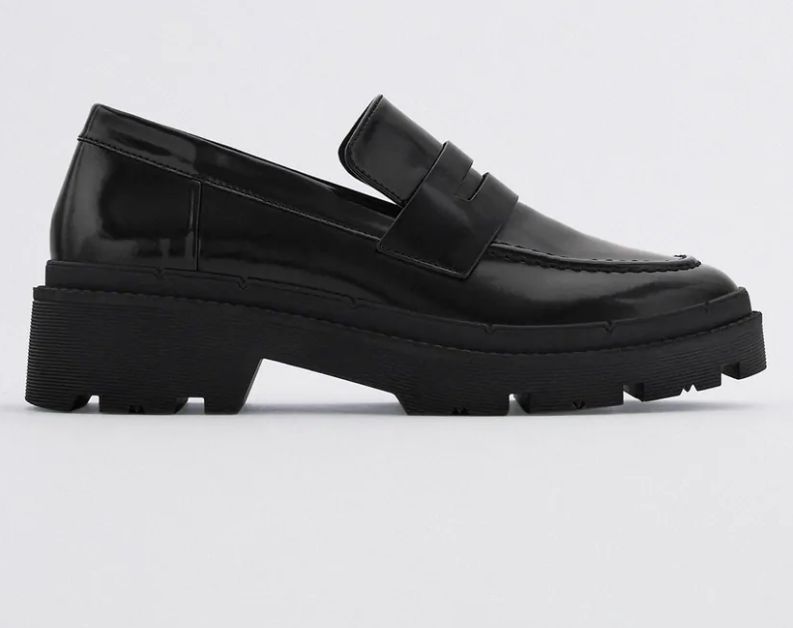 De nuevo Zara toma como base el mocasín clásico de toda la vida y le da otra vuelta de tuerca, en este caso añadiéndole la ya famosísima suela track a la que todo el mundo ha caído rendido. Caracterizada por ser una suela bastante más gruesa de lo habitual, consigue que llevar zapatos en invierno sea un placer incluso en los días de lluvia.