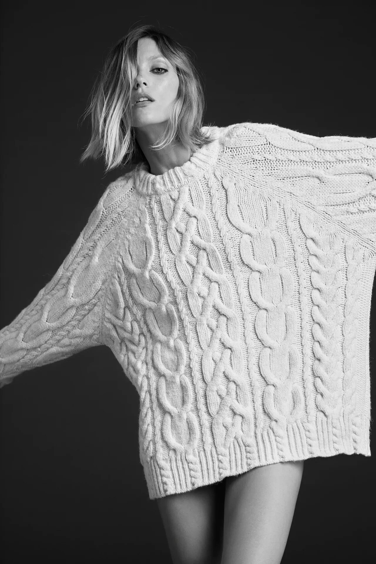 Este jersey de Zara es un diseño oversize, por lo que procura elegir bien tu talla, tiene cuello redondo, manga larga y el diseño de ochos en el tejido. El precio de la prenda es de 29,95 euros, y este es el enlace en el que puedes encontrarlo.