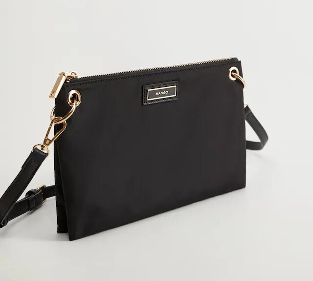 Para las ocasiones en las que no necesitas llevar demasiadas cosas contigo, este bolso de Mango puede ser el ideal. Al ser en color negro, y tener pequeños detalles en dorado, es la elección ideal para un look más elegante.