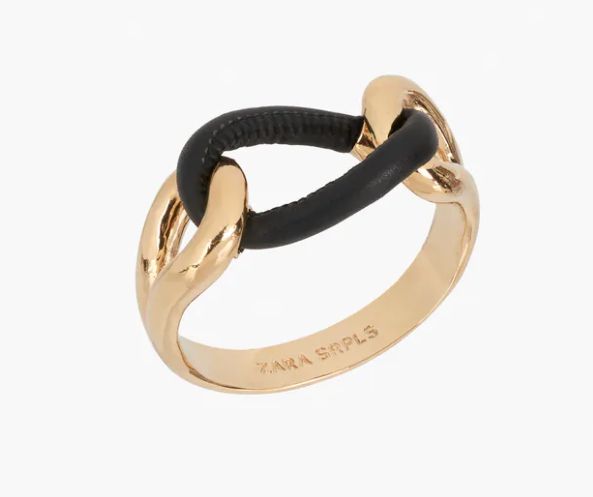 La colección de complementos de la gama SRPLS es para volverse loca, y además se renueva muy frecuentemente. Nos resulta complicado elegir solo un accesorio, pero al final nos hemos decidido por esta original pulsera de metal rígida en color dorado y combinada con una pieza de piel en la parte central.