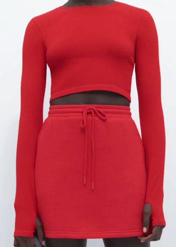 Se trata de una falda de algodón que nos recuerda mucho a los chándal clásicos de toda la vida, incluso tiene bolsillos y se ajusta a la cintura con cordón. En un llamativo color rojo que le dará alegría a los grises días de invierno. Además, también tienes disponible una sudadera a juego. Es el conjunto ideal para ir cómoda y guapa sin recurrir a prendas complicadas.