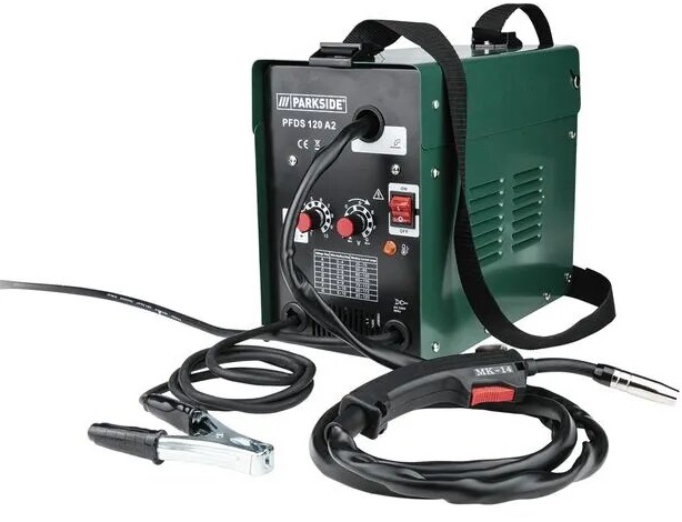 Ahora veremos esta soldadora de hilo tubular de 120 A de Lidl. Es una soldadora compacta, con carcasa metálica resistente y avance de alambra con dos rodillos de regulación continua. Funciona sin gas de protección y tiene una clase de protección IP21S y un grosor recomendado de 0,8 a 2,5 mm.