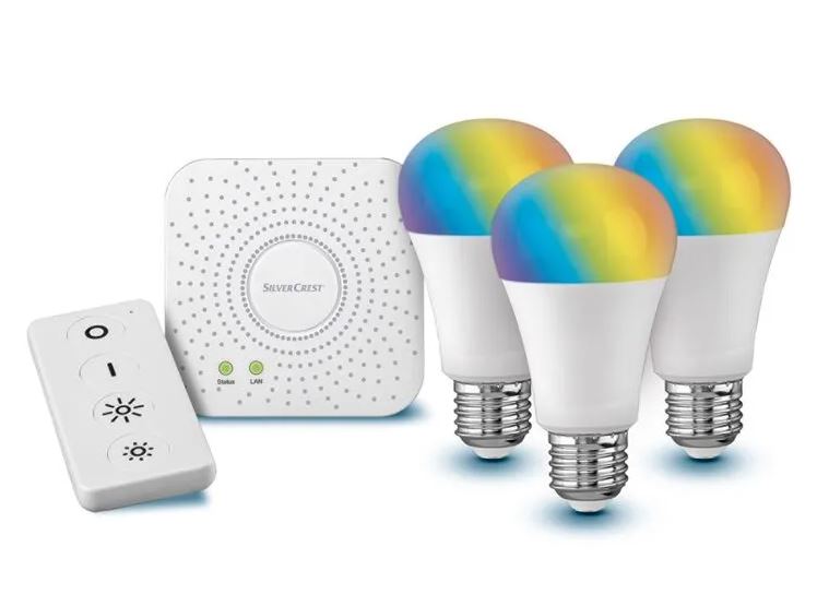 Para poder ahorrar algo de dinero tienes este set básico Smart Home de Lidl. En este set tenemos la central domótica que hemos visto antes junto con otros aparatos inteligentes que te ayudaran a empezar. En concreto, viene dos 3 bombillas inteligentes y un mando a distancia para controlarlo todo.