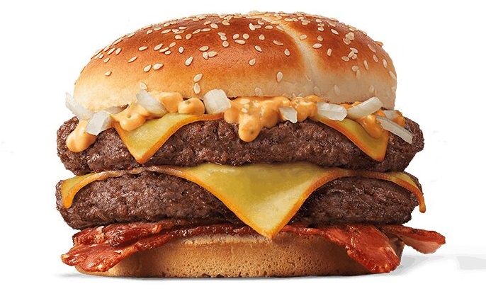 La siguiente hamburguesa de McDonalds es la Gran McExtreme con doble de beicon. Como su nombre indica, es idéntica a la Gran McExtreme que hemos visto antes, pero con doble ración, tanto de beicon, como de carne. Como de otros ingredientes como el queso. Además, también tiene el pan sin gluten, algo que hace que sea totalmente apta para celíacos.