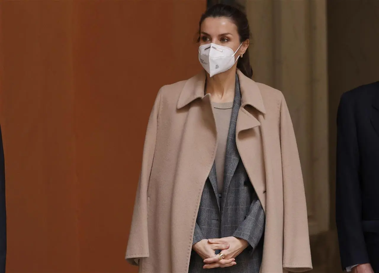 Para finalizar el look working girl, la Reina Letiztia eligió un cómodo recogido, sencillo, y con el rostro despejado, y la obligatoria mascarilla, en su caso, una de tipo EPI. Un estilismo de oficina que ha gustado a todo el mundo, ideal para el invierno, sobrio y elegante, y fácil de replicar con prendas low-cost.
