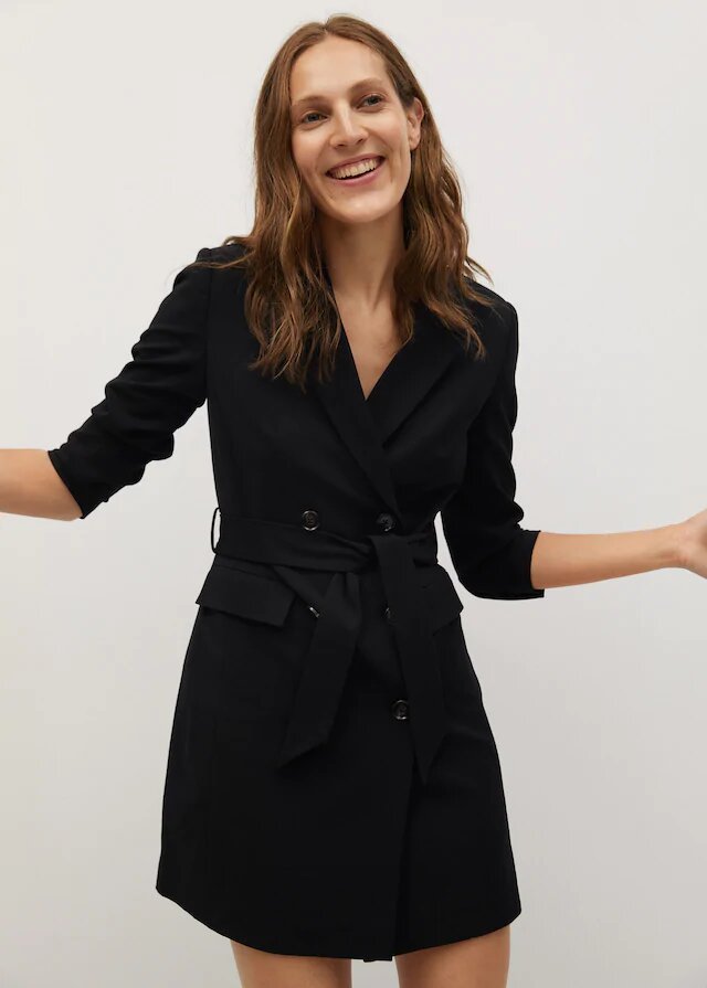 Este vestido de Mango, aunque sencillo, es capaz de llamar la atención gracias al diseño. Y es que imita a una gabardina, pero mucho más corta.
