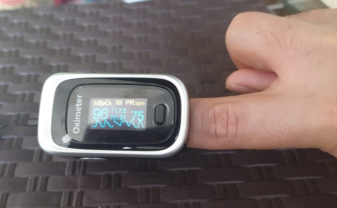 El mecanismo del oxímetro es sencillo. Se compone de dos diodos que emiten luz rojo e infrarroja, cada una con su longitud de onda propia. Se introduce el dedo en el aparato. La luz superior mide la proporción de hemoglobina y oxígeno en la sangre mediante pulsiones que no se sienten. La hemoglobina reacciona a estas en función del oxígeno que transporta. De ahí que pueda mostrar un porcentaje.