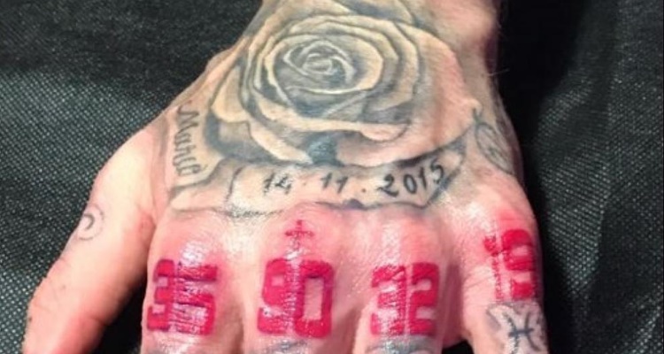 También Sergio Ramos tiene tatuados los dedos de las manos, dejando así poco espacio de piel en su cuerpo libre de tatuajes.