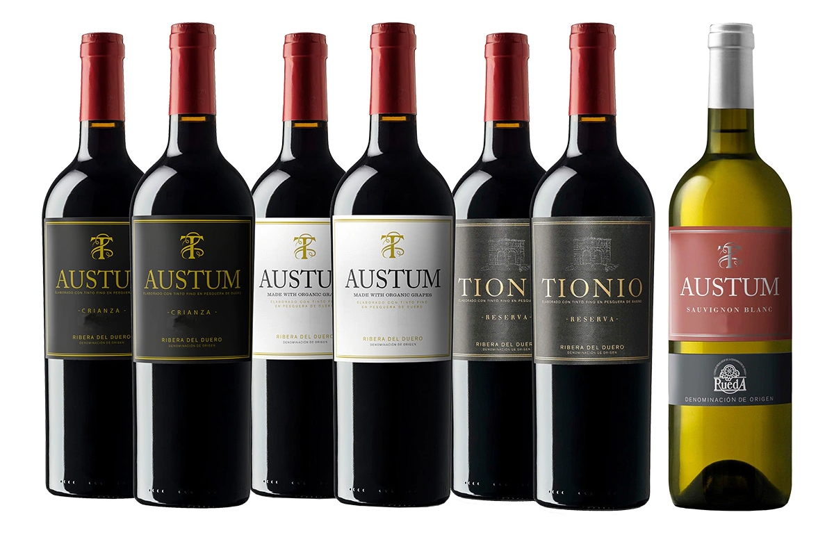 Por solo 70€, tras la rebaja del 34% que tiene aplicada, podrás comprar esta caja con 7 botellas de vino de Tionio-Austum.