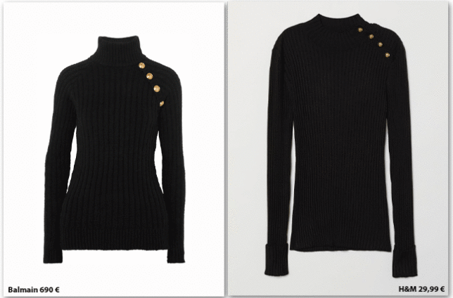 Imitando al jersey de cuello alto con botones de Balmain, llega el jersey de canalé de H&M a un precio muy inferior para aquellos a los que les gustan las prendas con buen gusto pero no pueden pagar los 700 euros del jersey de marca.
