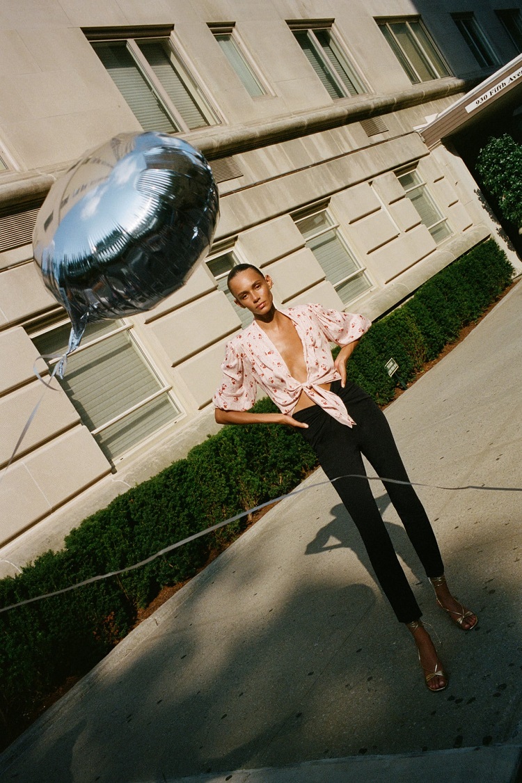 Ahora veremos esta blusa cropped estampada de color rosa. Es una blusa corta de escote pico pronunciado, manga por debajo del codo que acaba en elástico y detalle de nudo en bajo. En cuanto a su talla, está a la venta desde la talla XS hasta la talla XL.