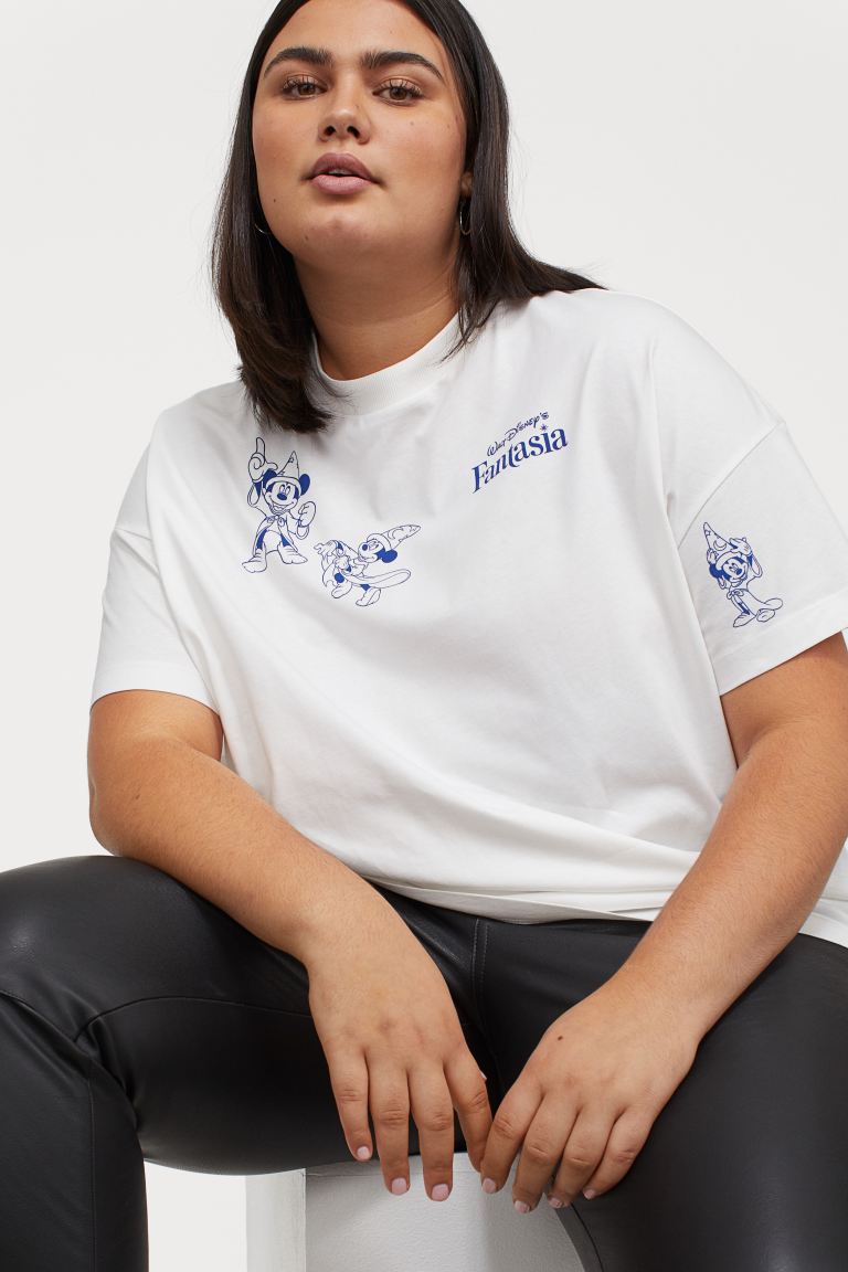 Otra prenda de H&M de su colección Fantasía de Disney, es esta camiseta en color blanco con motivo estampado del filme. Se trata de una prenda sencilla que podrás lucir en más de una ocasión.