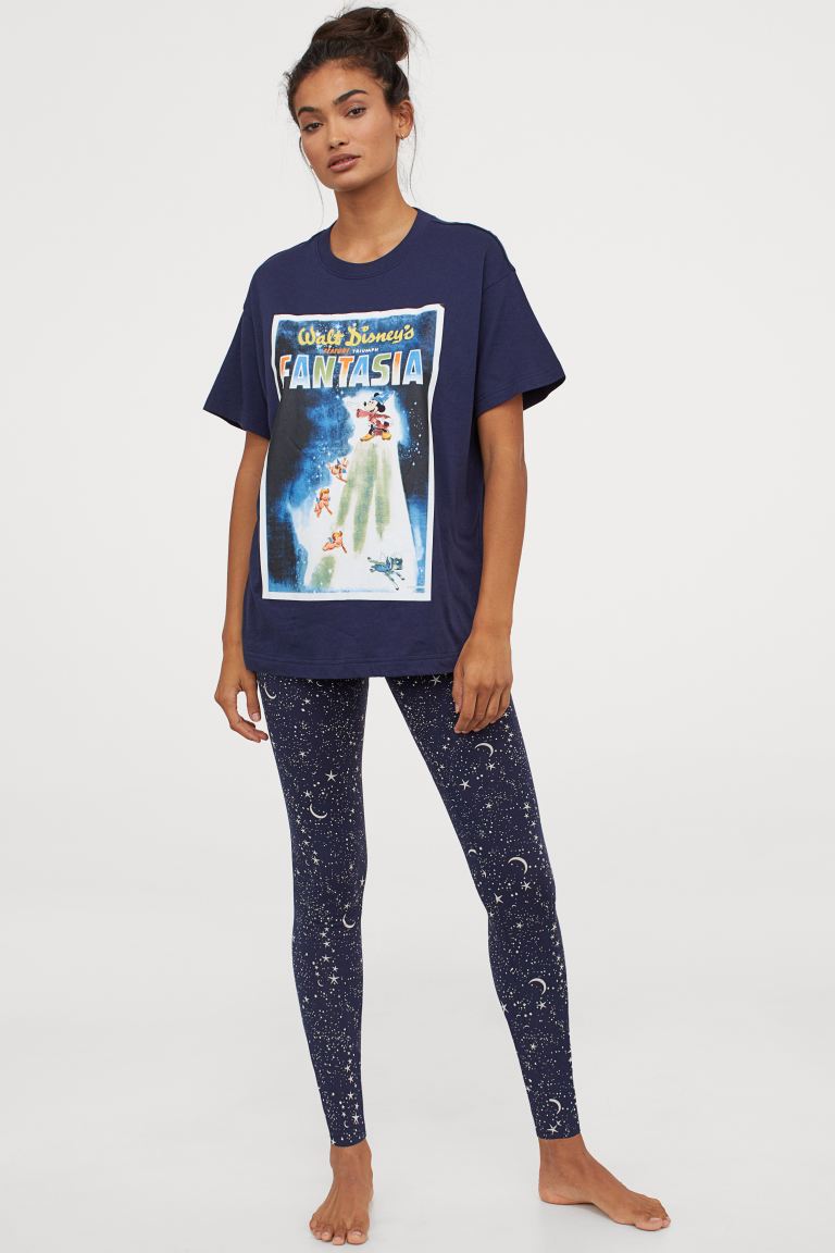 Incluso, puedes usarlo como pijama de invierno, la decisión es tuya. Se trata de una camiseta en color azul marino con un estampado a lo grande de la película Fantasía.