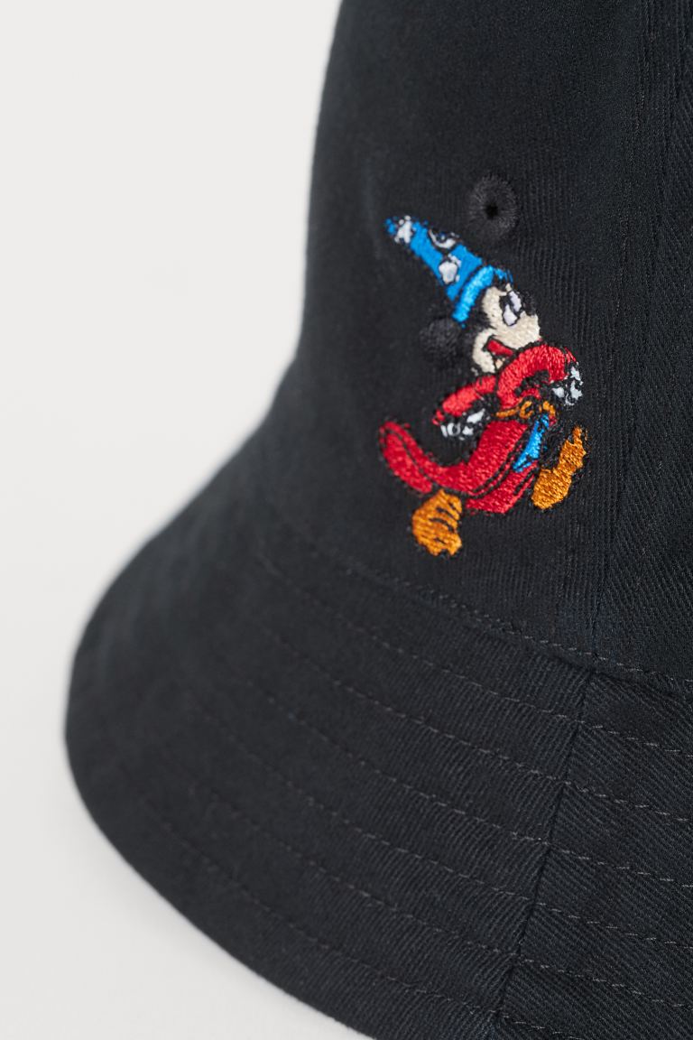 Se trata de un sombrero que nos recuerda a los empleados desde siempre por los pescadores. Es un modelo reversible, en uno de los lados tienes un estampado en blanco del personaje Mickey Mouse, y en el otro, un color negro liso con un detalle de bordado del personaje.