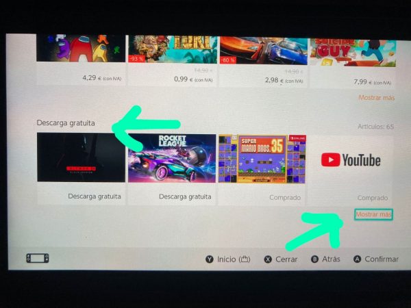 Lo que podemos hacer es entrar en la eShop, y a continuación, pulsar en la pestaña ‘Buscar’ en el menú izquierdo. Acto seguido, pulsamos en el botón ‘Límite de precio’. Se nos abrirá un menú en el que se despliegan varias categorías, según la horquilla de precio. Tan solo tendremos que bajar un poco hasta leer la etiqueta ‘Descarga gratuita’, y en la parte inferior derecha, pulsaremos en ‘Mostrar más’.