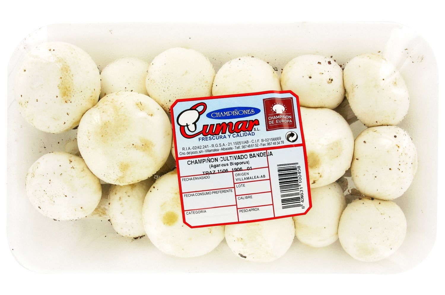 Un producto de la conocida marca Cumar y de procedencia europea, para ofrecer los mejores champiñones frescos de Villamalea., la conocida «ciudad de los champiñones» de Albacete.