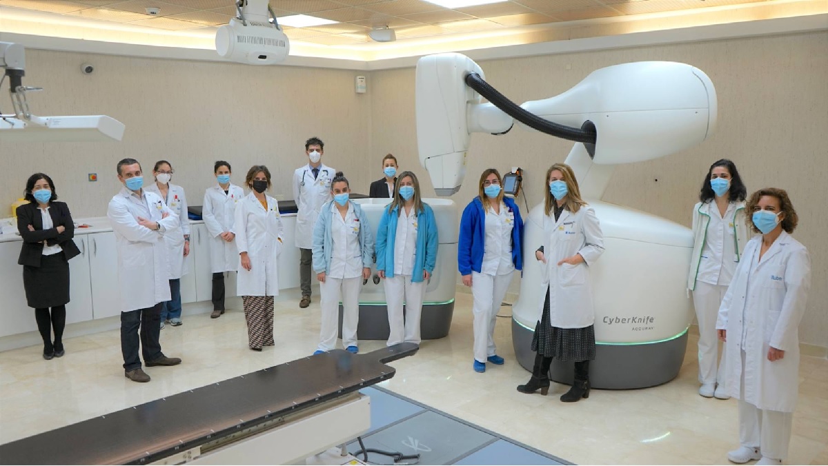 El Hospital Ruber Internacional ha integrado a su Serviciode Oncología Radioterápica un modelo avanzado de Cyberknife, el M6, y su equipo ha recibido formación específica en la nueva máquina. «La formación-según asevera la doctora Aurora Rodríguez- se ha realizado tanto en EE. UU. como en Suiza».