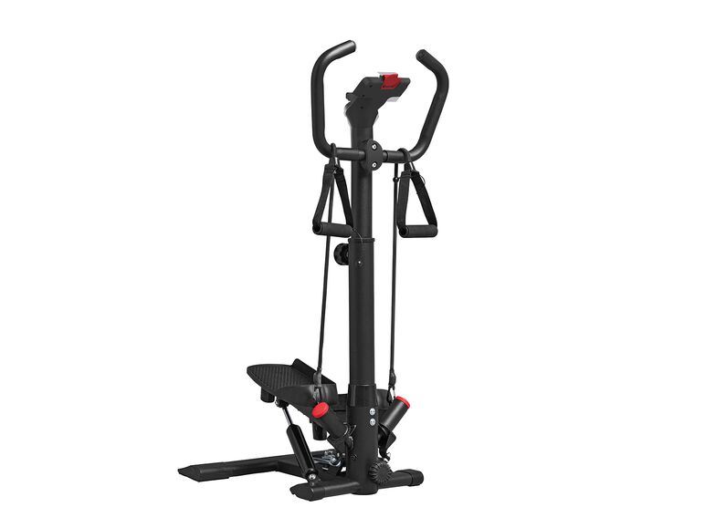 Es un aparato con manillar, pedales regulables, plataformas grandes antideslizantes y pantalla LCD que te dice todo tipo de datos con el entrenamiento. Soporta un máximo de 100 kilos, barra para sujetarse y mosquetones resistentes de metal para una sujeción segura. Su precio es de tan sólo 69,99 euros en Lidl.