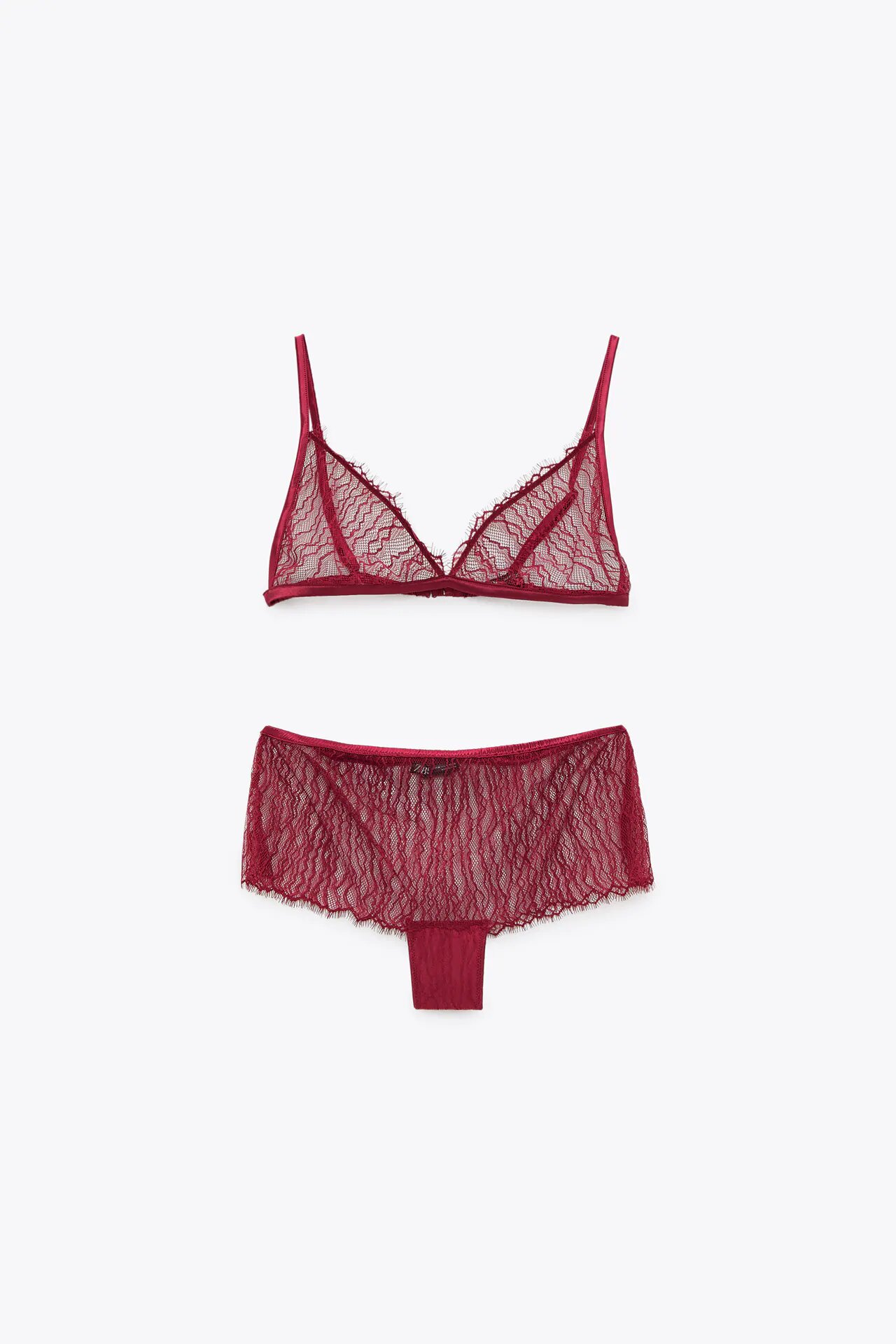 En el caso de este otro conjunto de Zara, y dado que las piezas se venden por separado, tan solo queda su bralette de encaje. Pero eso es un problema fácil de solucionar con solo dar una vuelta por Zara.