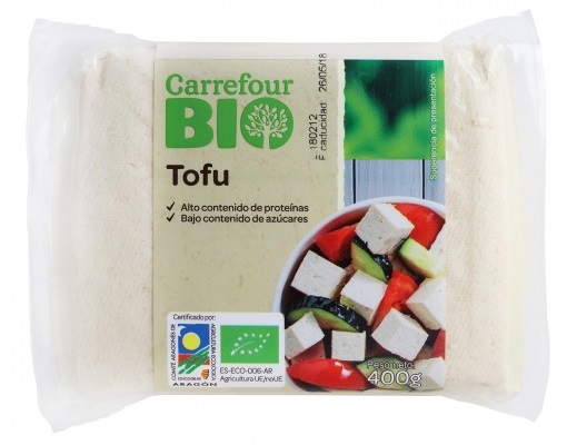 Si además de querer un producto ecológico quieres un producto vegano, no puedes perderte este tofu natural ecológico de Carrefour BIO. Este producto está hecho con agua, habas de soja de agricultura ecológica y sulfato de calcio como estabilizante.