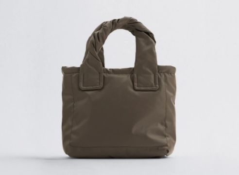 Seguimos con lo acolchado pero con un modelo totalmente diferente al anterior. Es más casual pero muy original para cualquier situación, incluida un compromiso importante. Es perfecto para esos días que no quieres o no tienes que llevar gran cosa y a la vez lucir un shopper pequeño con estilo y personalidad. Lo tienes disponible en Zara en varios colores. Tiene cuerpo acolchado con pespuntes y asas de mano entrelazadas. El asa al hombro es ajustable y extraíble como función bandolera. El cierre es por cremallera y en el interior tienes también un bolsillo adicional.
