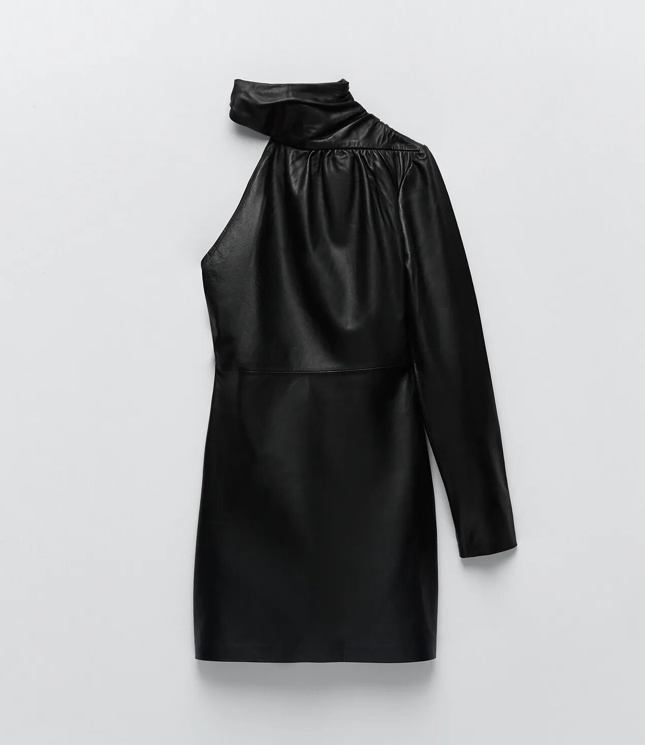 Vamos con un vestido más de piel de Zara, y es que este tejido es de los mejores para lucir en invierno, ya que durante el verano, es una tarea casi imposible. A pesar de ser diseños cortos, con y sin mangas, durante los meses de calor no hay quien soporte uno de estos.
