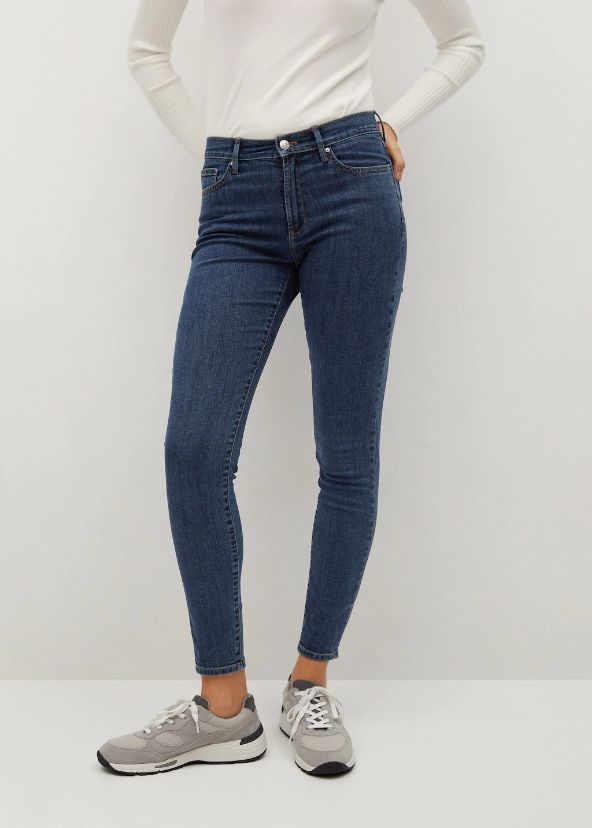 ¿Has visto estos jeans skinny de tiro medio que tanto están triunfando en Mango en los últimos días? Se trata de un pantalón denim que incluye 5 bolsillos y que incorpora un cierre de cremallera y botón. Tienen un precio muy barato, sobre todo teniendo en cuenta la calidad de sus materiales. Solo cuestan 20 euros. Además, están disponibles en 5 colores distintos.