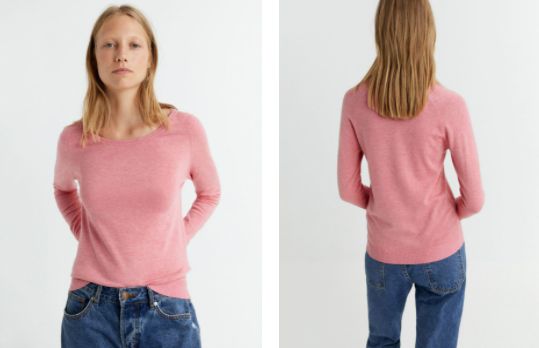 ¿Te ha gustado el modelo anterior? Si a pesar de que no es ajustado prefieres más de corte enteramente recto, y más fino para llevar debajo de un cárdigan o una blazer, echa un vistazo a este jersey de Sfera que puedes comprar en El Corte Inglés también por menos de 5 euros. Tiene disponibles menos colores, además de los que ya están de por sí agotados en todas las tallas como el morado, el rojo, que era precioso, o el amarillo pálido que era muy interesante. Pero con estos precios, han volado.