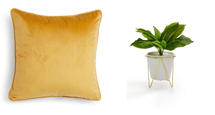 2El cojín color mostaza de Primark Home y el macetero con planta artifical para una decoración estupenda