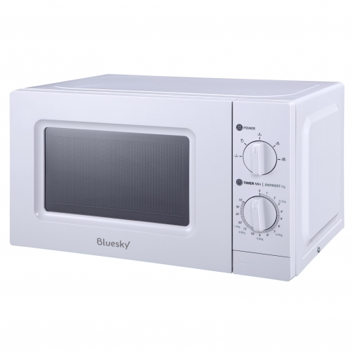 Seguimos con este Microondas Bluesky BMO20SM-20 de venta en Carrefour. Es un microondas sin grill, con capacidad de 20 litros, 5 niveles de potencia hasta 700 vatios como máximo, descongelado rápido y apertura automática de pulsador.
