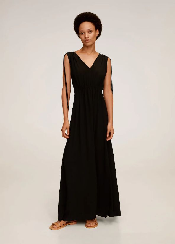 ¿Estás buscando algún tipo de vestido largo que sea elegante? Pues te recomendamos que eches un vistazo a esta prenda, bien a través de la tienda online de Mango o en cualquiera de sus tiendas físicas. Se trata de una prenda fabricada a base de tejido fluido, que tiene el cuello en forma de pico y que es de diseño acampanado. Todo esto, junto a sus tirantes anchos, hacen de esta prenda una gran opción para llevar en ocasiones en las que se exija ir vestida de manera elegante. Además, sigue de rebajas. Solo cuesta 15 euros.