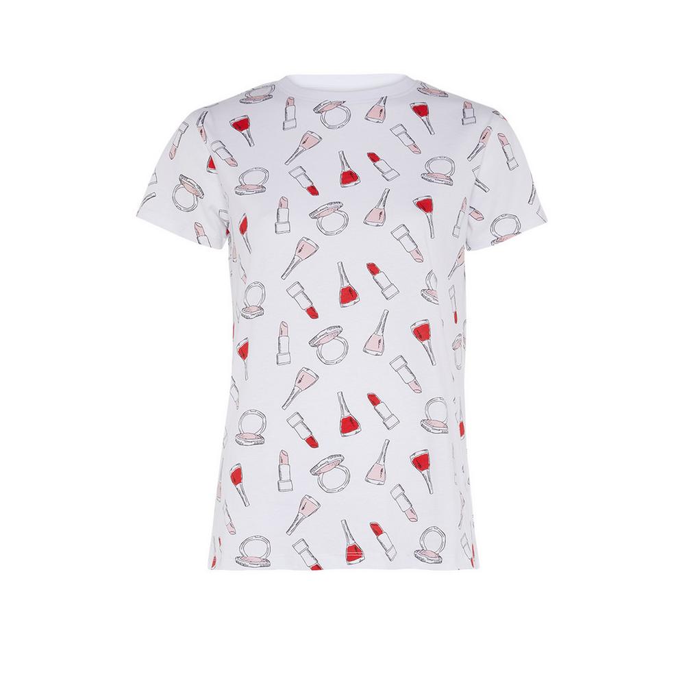 Pasamos a un modelo más sencillo de Primark. En este caso tenemos un estampado con diferentes productos de maquillaje, un estilo de prenda que no es tan habitual en la cadena de moda irlandesa.