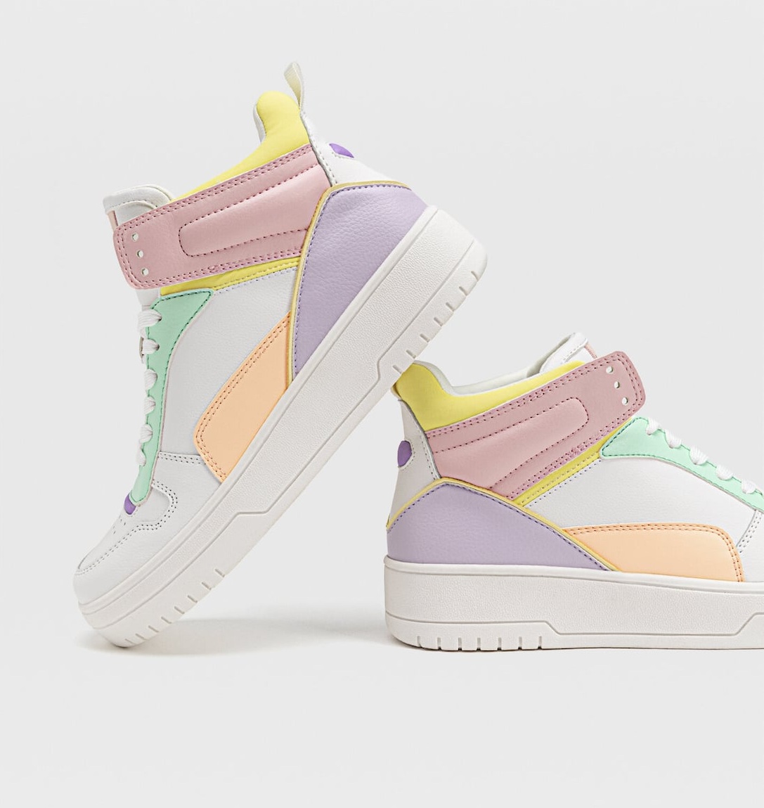 Ponemos fin a esta lista de zapatillas de Stradivarius con un modelo más de botines. Este con colores algo más llamativos, pero que siguen estando en tonalidades pastel. No cabe duda de que la firma se arriesga con la combinación, pero resulta evidente viendo la imagen que encabeza estas líneas que la elección no podría haber sido mejor.