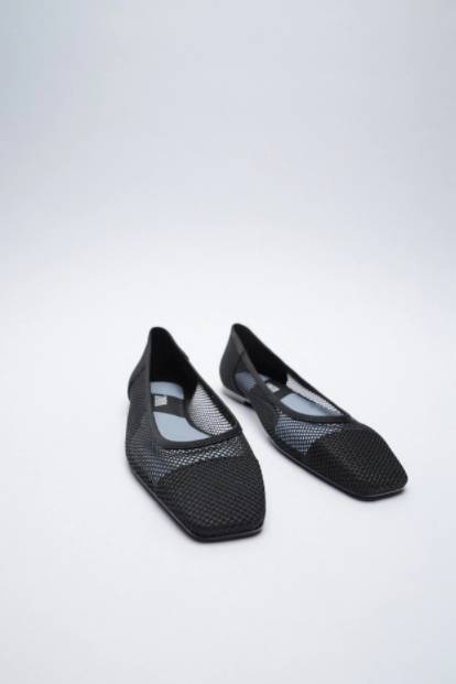 Si te niegas a renunciar a las bailarinas, aquí tienes un zapato cuyo diseño recuerda mucho al de ese tipo de calzado. Son unos zapatos planos en color negro, lo que te permite combinarlos con toda tu ropa. El punto lo diferente lo pone el hecho de que el cuerpo es de rejilla.