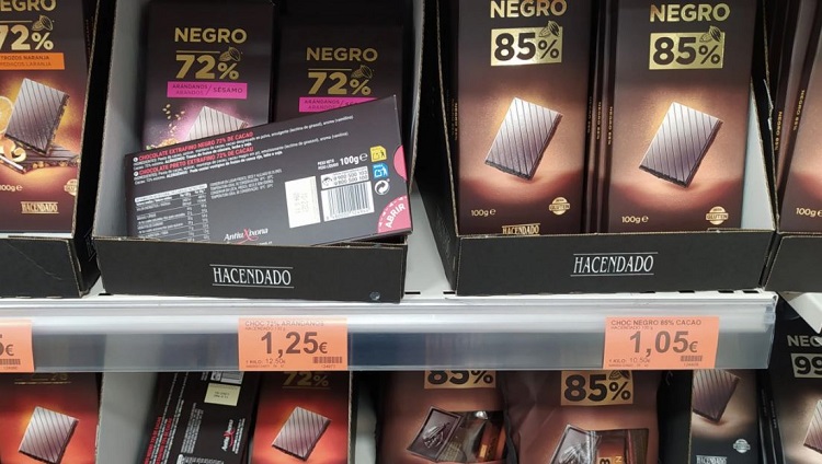 En primer lugar, empezaremos con el chocolate del supermercado de Juan Roig. Aunque no tenga la misma fama que Lidl, tiene una calidad que no está tan alejada como la gente se cree. Esto es porque vende chocolate de alta calidad, entre el 55% y el 99% de cacao. Todos ellos están fabricados por Antiu Xixona, la cual también hace turrón.