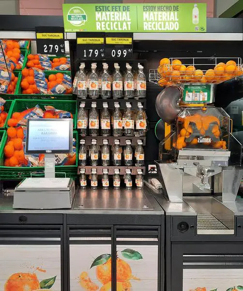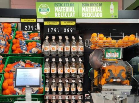 Mercadona ha introducido en todas las tiendas de la cadena una nueva botella de zumo elaborada 100% con plástico reciclado, por lo que deja de utilizar 700 toneladas de plástico virgen al año, lo que «fomenta la economía circular y disminuye el impacto ambiental».