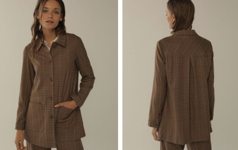 Si hablamos de blazers diferentes, ¿qué tal uno estilo Tweed? Esta es la propuesta más original de Tintoretto en sus prendas para mujer en El Corte Inglés. Un blazer de cuadros, con bolsillos frontales de gran tamaño, y patronaje camisero: cierre con botones a lo largo de todo el frontal, con cuello cerrado y manga con puño vuelto. En la parte trasera incluye una pinza abierta. De corte lago, sólo está disponible en color marrón con los cuadros en contraste. Tiene un 70% de descuento, por lo que sólo te costará 26,99 euros.