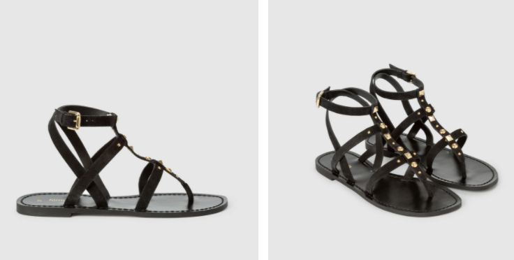 Comenzamos este recorrido por los zapatos de oferta en la marca Fórmula Joven de El Corte Inglés con unas sandalias para ella. Por supuesto, son completamente planas, a fin de ganar en comodidad. Esta primavera, todo lo plano o lo que tiene poco tacón va a triunfar. Estas sandalias llaman la atención por sus tiras en serraje negro en contraste con los detalles de las tachas que la adornan. Utiliza cierre de hebilla en el tobillo. Resultan muy cómodas gracias a su puntera redondeada y la fijación de las tiras, salvo si eres de los que no soporta las chanclas con unión en el dedo. La base es de poliuretano caucho y la suela de caucho. Busca tu talla y consíguelas con un 25% de descuento por tan sólo 29,99 euros.