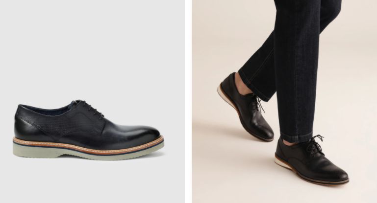 Entramos de lleno en el universo de los zapatos de hombre de Fórmula Joven que están rebajados en El Corte Inglés. Y lo hacemos con uno de los modelos clásicos reinventados de la firma. Estos zapatos de cordones están confeccionados en piel en un bonito azul marino. Para jugar al contraste, la suela se divide en tres tonalidades: la del apoyo del pie, la intermedia y la suela propiamente dicha. Lo original de esta propuesta es que introduce la cuña también para el hombre, aunque más disimulada. Tanto el forro interior como la plantillas son de algodón. Encuentra tu talla y aprovecha para comprarlas con el 70% de descuento.