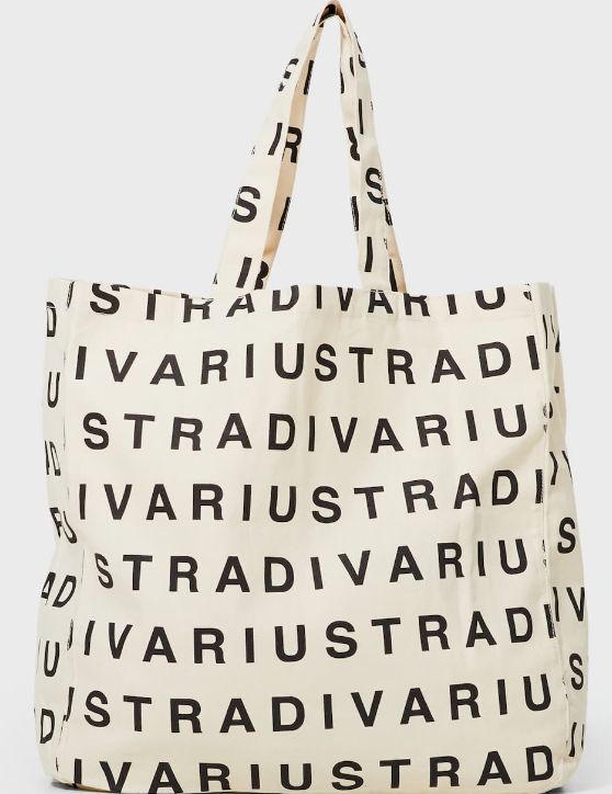 Comenzamos este repaso con un artículo muy especial. Se trata de un bolso de lona de color blanco en el que la marca Stradivarius sale repetido varias veces en color negro. Una de los aspectos que más nos ha gustado es que es muy amplio. Puedes meter dentro cualquier prenda de ropa que te quites, libros o incluso hasta un ordenador portátil. Hay espacio para todo. Además, es lavable a máquina. Así que cada vez que se te ensucie, no tienes más que meterlo en la lavadora. Pero lo mejor es su precio. Porque tan solo cuesta 6 euros.
