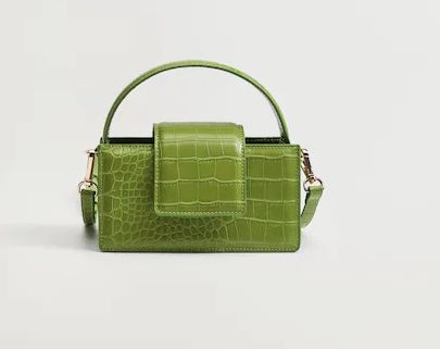Los mini bolsos están en tendencia esta temporada, y son ideales para la primavera y el verano, para combinar con prendas ligeras, en looks donde pueden tener más protagonismo. Además hoy día, lo podemos tener todo en nuestro smartphone, así que poco más necesitamos llevar encima cuando salimos de casa. Entre los accesorios de la nueva colección de Mango, le hemos echado el ojo a este pequeño bolso con efecto cocodrilo, un asa larga desmontable para llevar como bandolera y un asa corta para llevar en la mano. Cierra con un imán, y mide 18.0×17.0x8.0cm (LargoxAltoxAncho). Está disponible en dos preciosos colores, también muy de moda: lila y verde. Solamente cuesta 15,99 €.